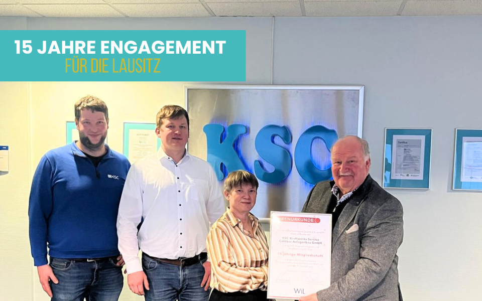 Anlässlich der 15-jährigen Mitgliedschaft in der Wirtschaftsinitiative Lausitz e. V. (WiL) wurde die KSC Kraftwerks-Service Cottbus Anlagenbau GmbH mit einer Ehrenurkunde ausgezeichnet. Die Würdigung erfolgte als Anerkennung für das langjährige ehrenamtliche Engagement des Unternehmens zum Wohl der Lausitzer Wirtschaft.